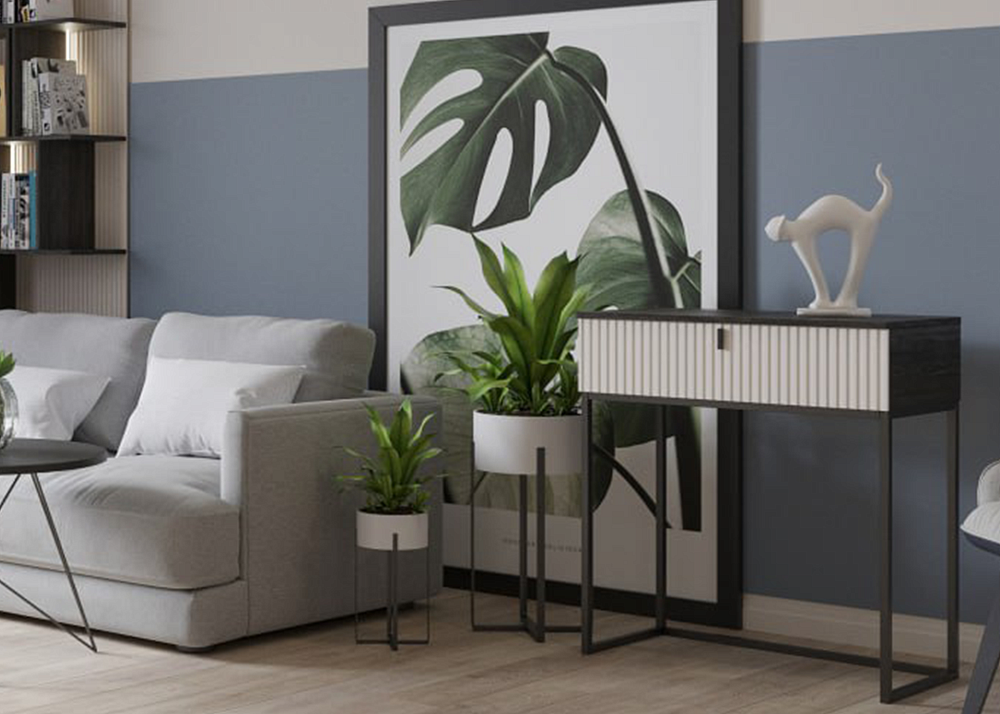 Эта консоль — воплощение стиля ар-деко: чёткие линии, симметрия и изысканная детальность. Основа — прочный и элегантный металлический каркас с золотыми ножками, которые придают конструкции лёгкость и роскошь. Верхняя полка — идеальное место для декора, подсветки или аксессуаров, подчёркивающих стиль помещения. А вместительные ящики скроют в себе всё то, что всегда должно быть под рукой.